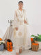 • Pants: Matching Korean Raw Silk trousers with a floral embroidered patch